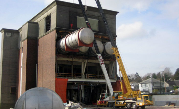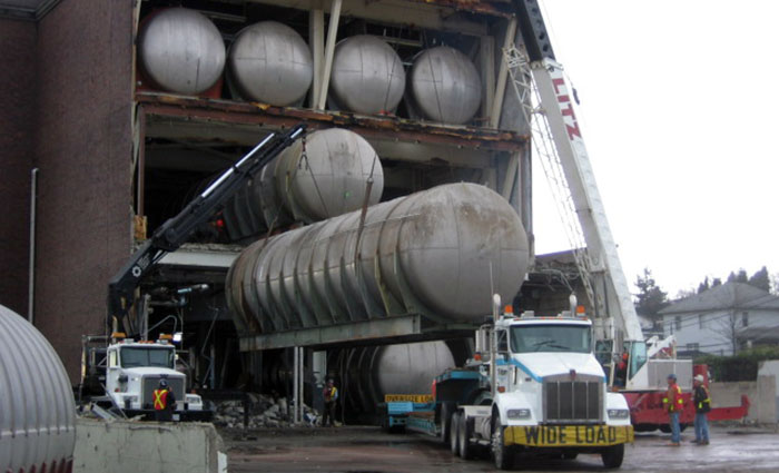 Pacific Demolition Ltd. was contracted to salvage tanks, pumps, motors and other miscellaneous equipment from BC’s oldest brewery before demolishing its remaining buildings. A number of historically significant artifacts, identified by the New Westminster Community Heritage Commission, were carefully dismantled and placed in safe storage. All salvaged items were catalogued and documented for the owner.