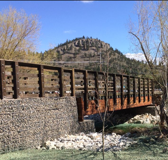 The project included; construction of 14m span heavy timber bridge across Mill Creek, including retaining walls, landscaping and paved multi-use trail.