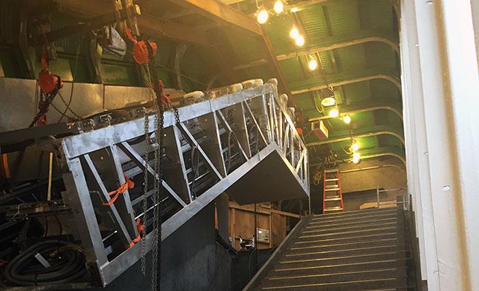 As all 4 of the escalators were in different locations, we had to develop four custom designed and engineered solutions to remove and replace the escalators. The first was completed with a crane, the second with our hydraulic gantries, the third with a custom dual monorail attached to the roof of the stations staircase, and the fourth involved a temporary monorail setup to span the escalator from the floor above.