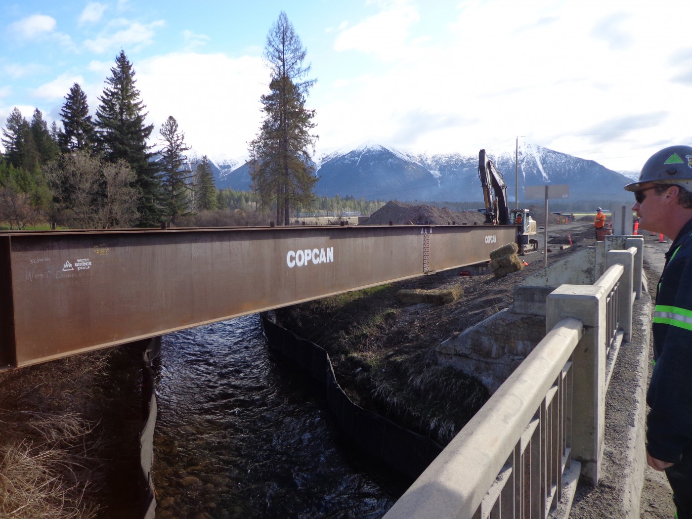 The project included; the removal of an existing highway bridge and pedestrian bridge; provision of a temporary highway bridge and bypass; new bridge construction and cast-in-place concrete; pre-stressed concrete stringers, grading, roadway and drainage excavation; clearing and grubbing; paving, roadside barrier, pavement marking, site restoration and landscaping, and in-stream placement of riprap and sediment control.