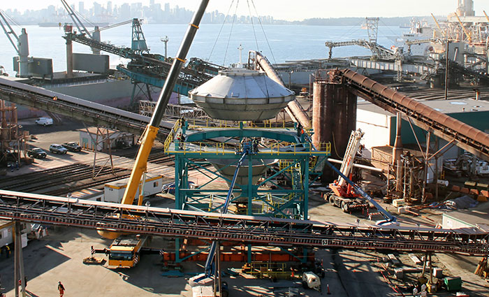 Neptune Bulk Terminals chose LNS to upgrade their conveying systems to increase the capacity of their rail-car unloading and material transfer to ships to 6,000 tons per hour. This project involved installation of underground conveyor pits, overhead conveyors and a new stainless steel surge bin. LNS worked closely with Neptune Bulk Terminals and its partners to develop a methodology that allowed the terminal to remain operational as much as possible during construction.