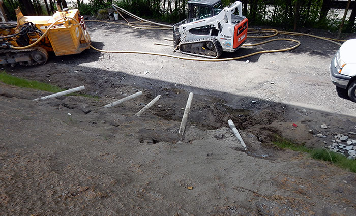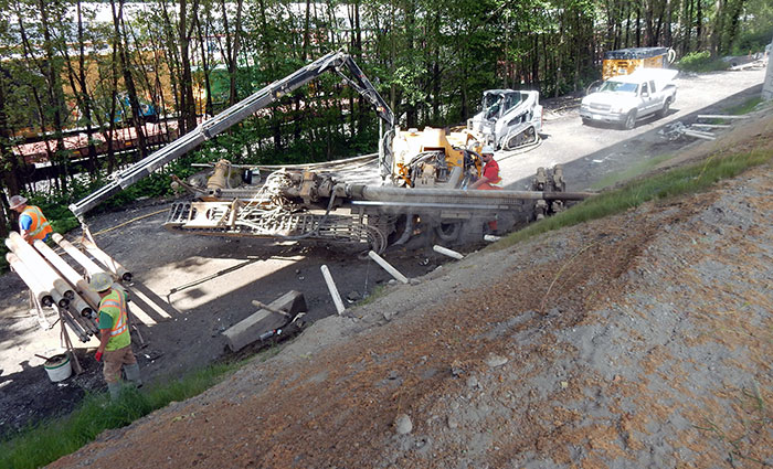 BelPacific was subcontracted to perform the installation of PVC fan drains underneath the road structure of a previously constructed portion of the Trans-Canada Hwy. The scope of work involved drilling holes up to 300 ft in length through roadway embankment material on a negative 2 degree batter and the subsequent installation of PVC pipe drains.